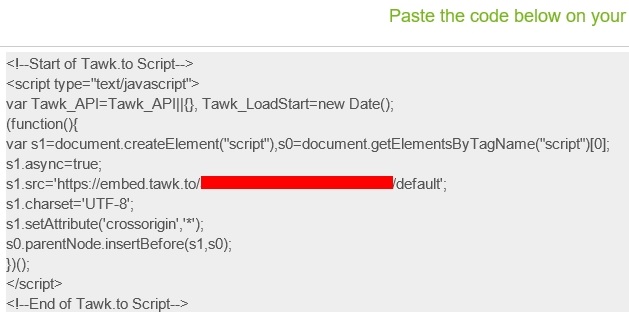 Pendant la phase d'inscription, ou dans le mail de confirmation, ou dans votre compte client, vous trouverez un script à inserer sur vos pages. Pour l'integrer à visite 360, il vous suffit de récuperer l'identifiant, puis de le mettre dans le champs "Votre Id de site TawkTo" de votre compte visite360.